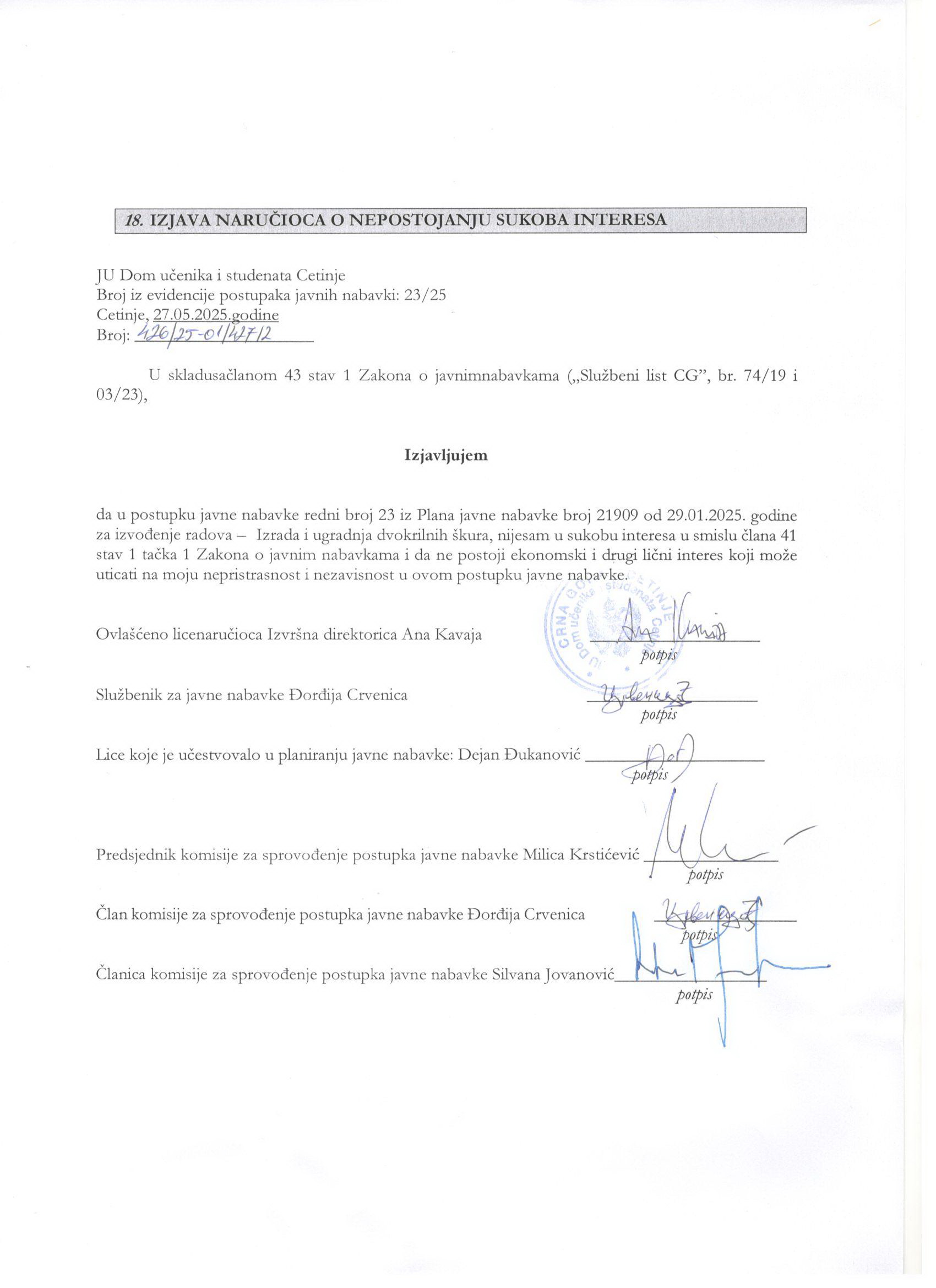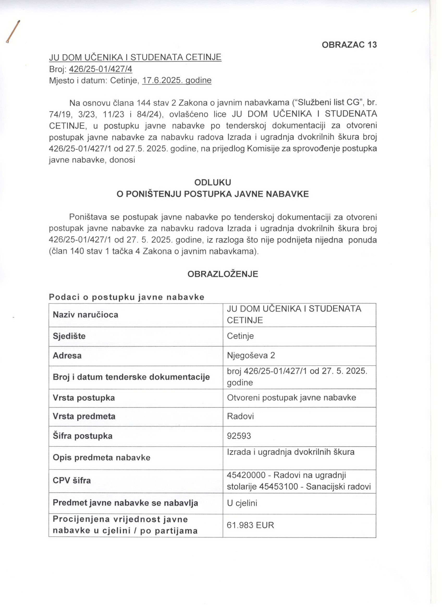 | Naručilac: | JU DOM UČENIKA I STUDENATA CETINJE | |||||||||||||